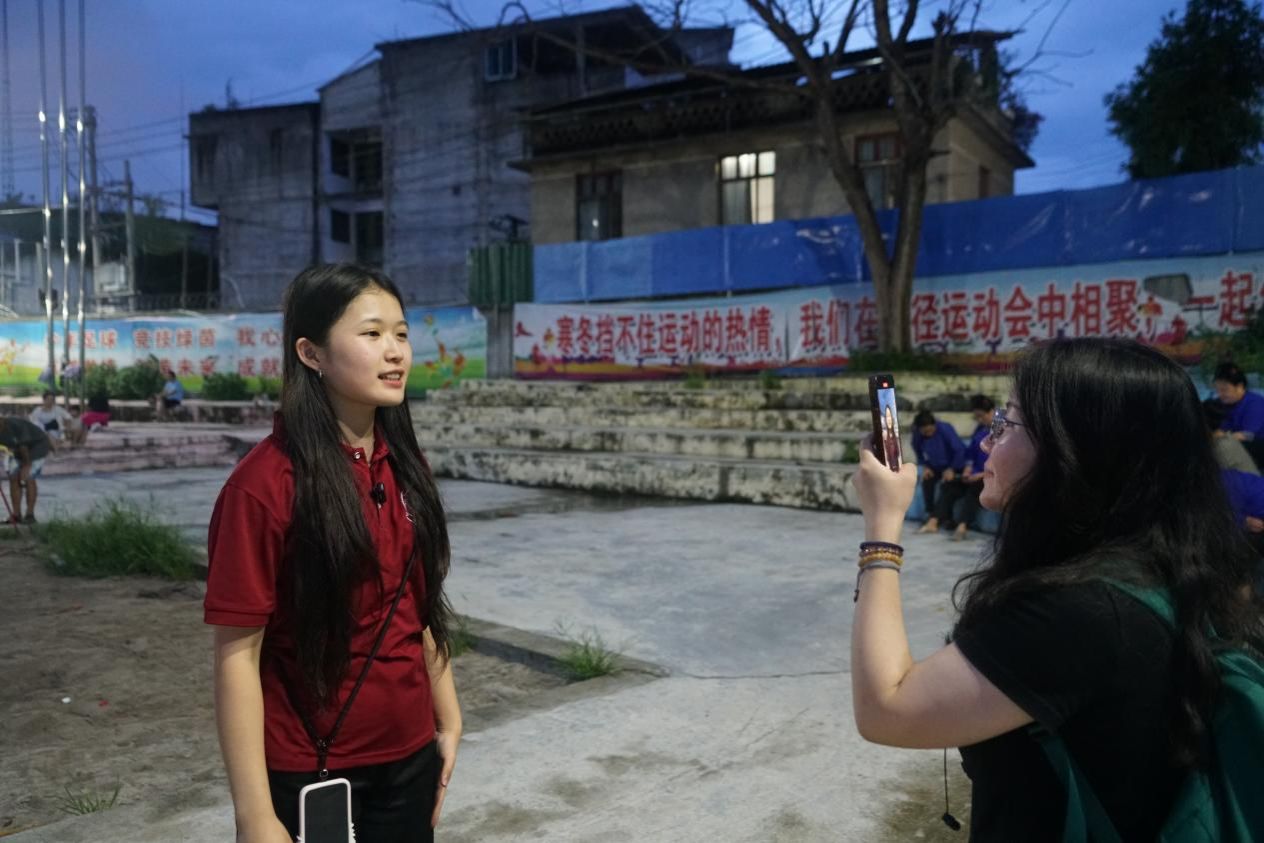 图为7月23日,团队成员向侗族村民学习纳鞋垫