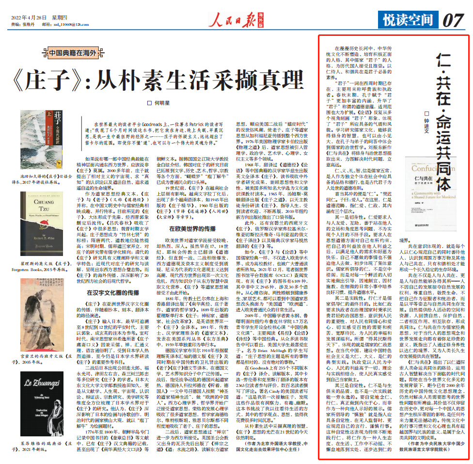 钟进文教授撰写的《仁·共在·命运共同体》一文。