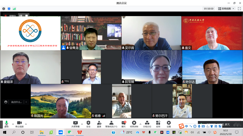 教授委员会委员钟进文、艾尔肯·阿热孜、杨春、姜镕泽、扎巴、叶尔达、陈国光、阮宝娣、努尔巴汗·卡力列汗参加会议并进行审议,金青龙副院长做了汇报。会议由钟进文主持。