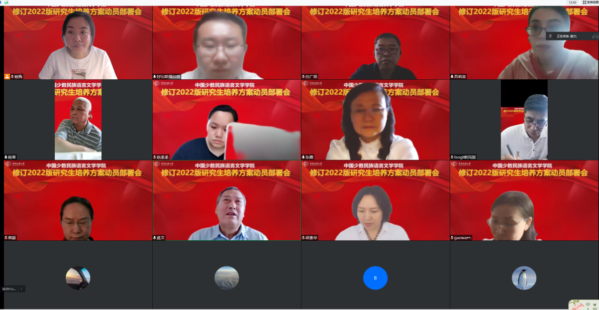 研究生导师组于2022年6月1日上午采用线上方式召开修订2022版研究生培养方案动员部署会议。我院语言学及应用语言学、中国少数民族语言文学、中国古典文献学、比较文学与世界文学四个二级学科专业的研究生导师组组长均出席了会议,成人小说