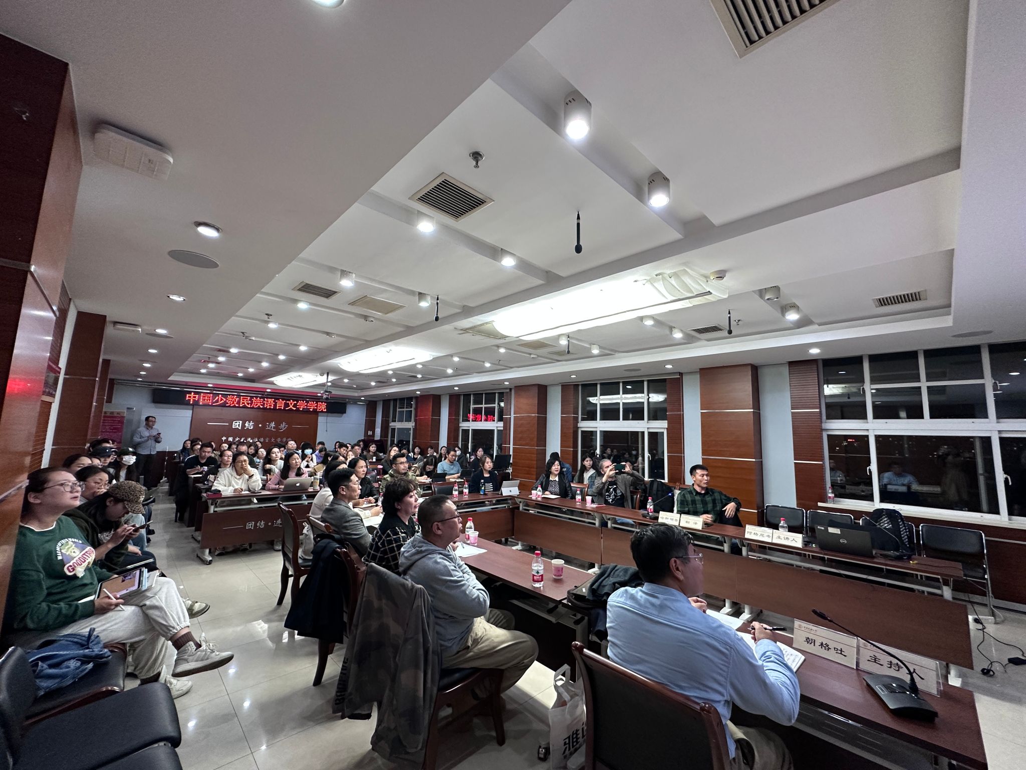 在互动环节,与会师生争相提问,围绕阿格尼希教授报告内容展开热烈讨论,现场学术氛围浓厚。最后,朝格吐教授做总结,他呼吁青年学子们更多地学习借鉴阿格尼希教授在学术报告中提到的各类研究方法,尤其重视田野调查和语言学习,在实践中获取更加丰富的研究资料。本次活动采取线上线下相结合的方式在海淀校区和丰台校区同时进行,为广大师生提供了一次宝贵的学术交流机会,有利于大家拓宽学术视野、激发学术热情,进而提高学术水平,推动学术创新能力。