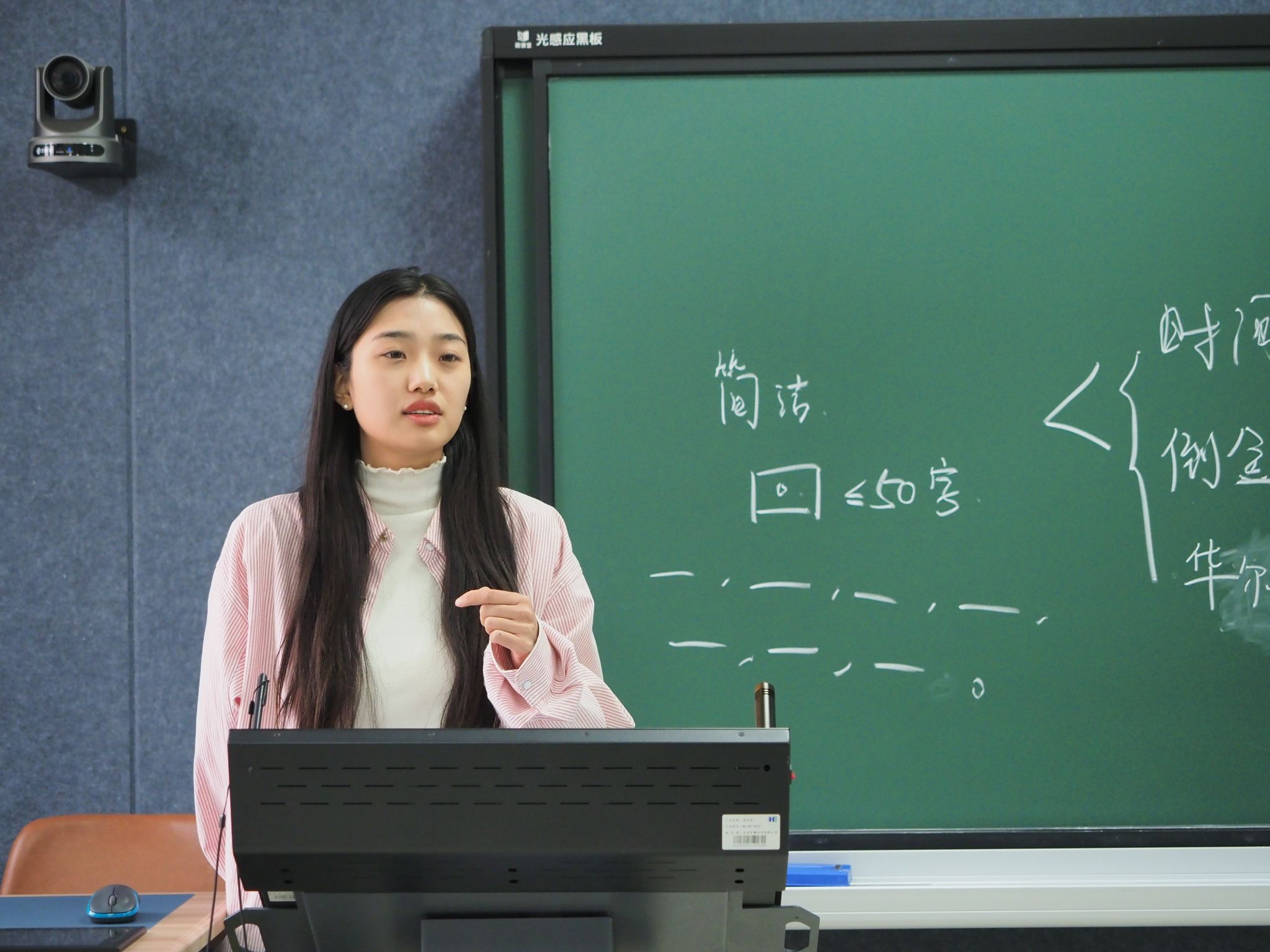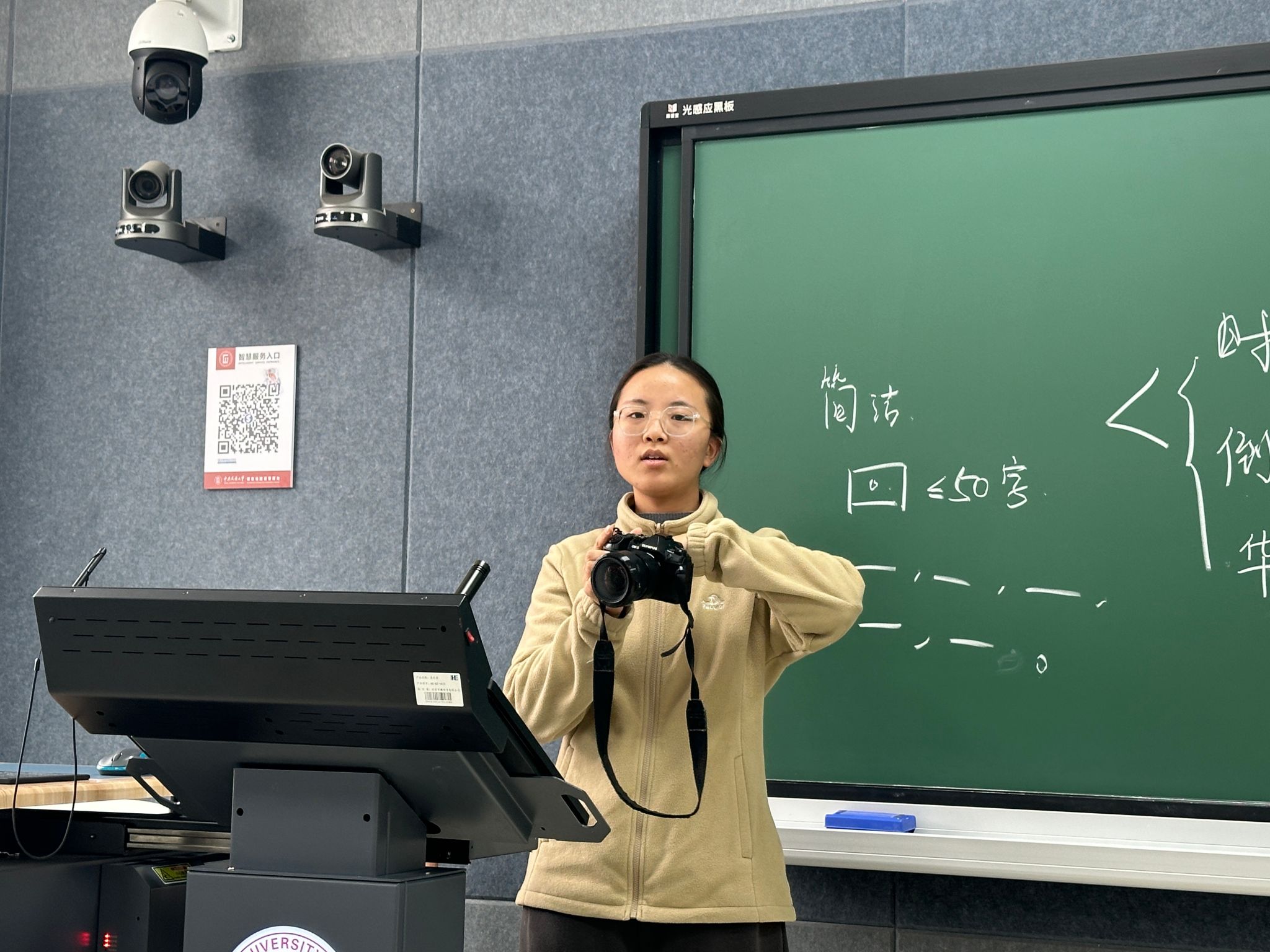 梁甜同学在做新闻摄影培训中,详细介绍了相机的参数和拍摄原理,并在现场演示了相机的使用技巧和注意事项。她强调,在拍摄前要提前踩点、思考拍摄内容;拍摄时灵活变通、找准合适的拍摄时机。只有在实践中不断试错,才能不断进步。