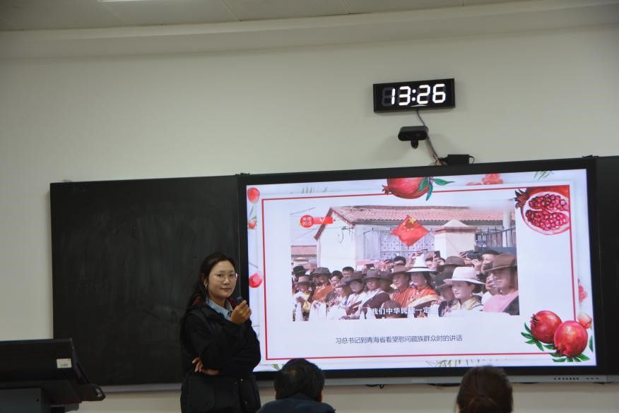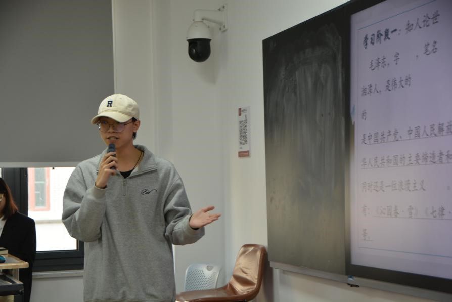 本科生赛场,六位选手依次登台。达木·朱力克别克深入讲解杜甫笔下《春望》诗篇,带同学共感诗人的忧国忧民之情;黑惹里色莫生动引入中国古典趣题“鸡兔同笼”,注重思维启迪;阿依西·阿力木以《论语十二章》为切入点,让古老智慧在课堂上焕发新活力;金凡丁聚焦历史,讲述抗美援朝战争与铸牢中华民族共同体意识,激发同学爱国情怀;依火伍牛以“中华民族一家亲”为选题,强调民族团结重要性;刘蔚然细致解读《沁园春·长沙》,携学生品味诗词中所蕴含的深远意境。