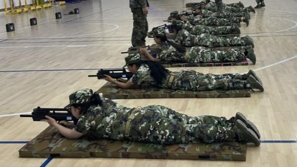 终于迎来了模拟实弹射击训练,教官告诉我们,射击不仅需要准确的瞄准和稳定的手腕,更需要内心的平静和专注。终于轮到我上场了!我瞄准靶子、稳住手腕、摒住呼吸,"嘭"一声枪响,旁边的机器发出响亮的声音——“脱靶”。我不敢放松,连射几枪,“脱靶、脱靶、脱靶……”。转头对见证我“不俗战绩”的教官不好意思的笑了笑,教官严肃的语气中带着一丝安慰:“没事,体验为主,下一枪往右上偏”。好开心,最后一枪终于上靶了!