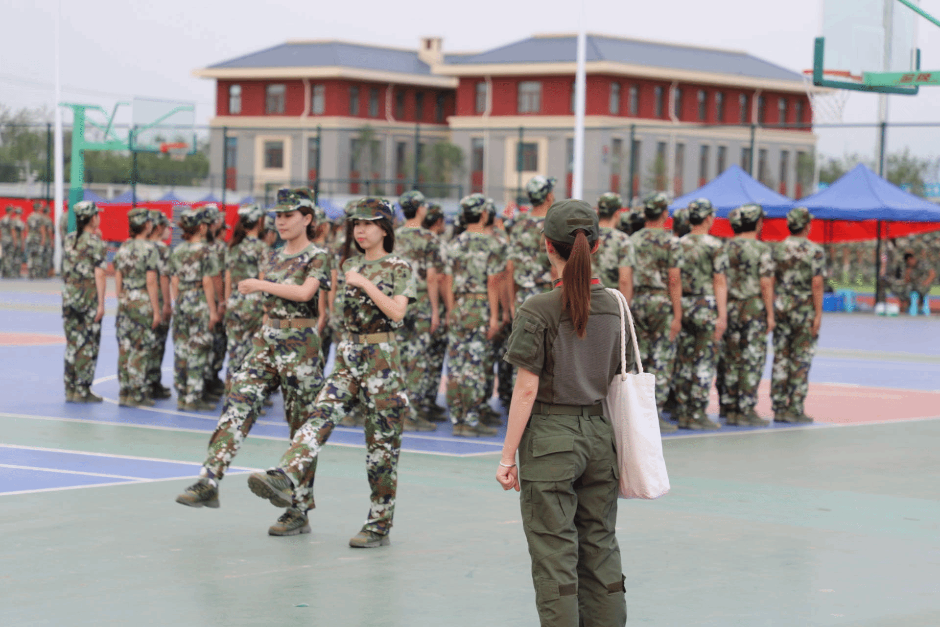 某天下午,天气闷热得要命,我们也终于要学习正步走了。“平时会走路,为啥一踢正步就很奇怪”,随着教官一声“正步走”的口令,我们踏着“乱七八糟”的“正步”走向他时,教官深呼一口气,说了句“你们等一下啊,我缓一缓”。