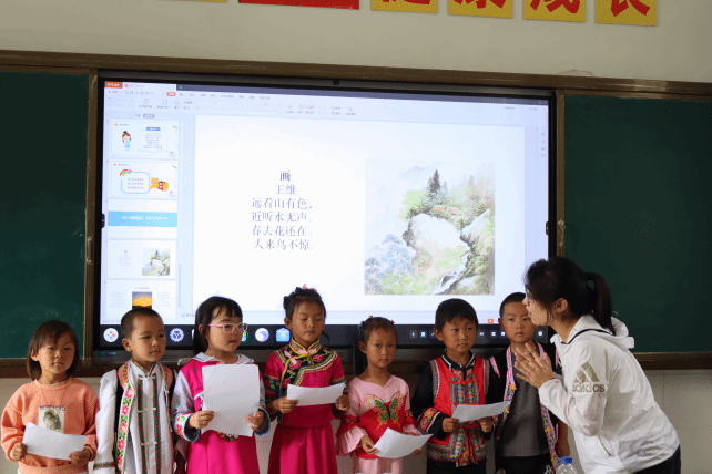 以“学好普通话,筑梦新时代”为主题,面向青少年开展掌握国家通用语言文字和了解中华文化历史演进与当代价值意义的宣讲,辅之以“唱一支歌”“读一首诗(词)”等形式多样的实践活动,带领学生一齐歌唱《我和我的祖国》《你笑起来真好看》,诵读讲解诗词《画》《伟大的祖国妈妈》《沁园春·长沙》,鼓励各民族青少年要将铸牢中华民族共同体意识牢记于心、付诸于行。