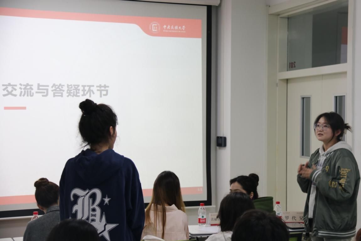 活动第二项,交流与答疑环节。现场同学积极提问,就“如何平衡好学生工作与专业学习”“如何规划保研考研”等问题与三位学姐进行了深入交流。