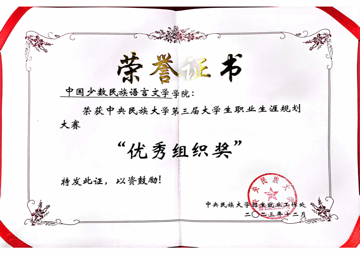 第三届大学生职业生涯规划大赛。在本次大赛中,我院精心组织、广泛动员,为参赛选手提供支持和指导,最终荣获优秀组织奖。