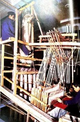 古式提花机也叫花楼,需要两个人操作。